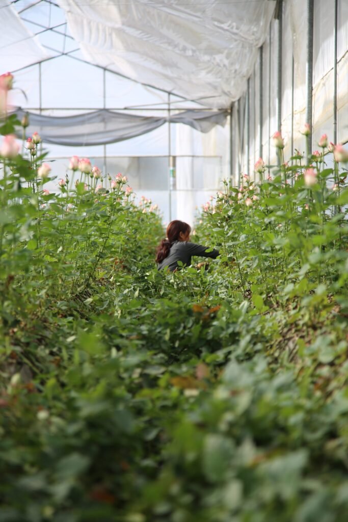 Flowers are carefully handled, sorted, and prepared by experienced workers before entering cold chain procedures and export packing.